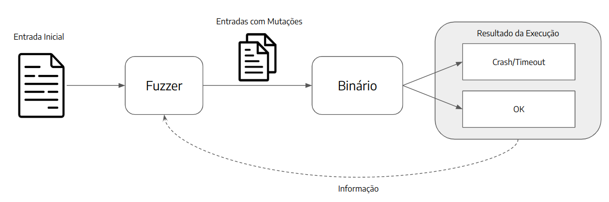 Fuzzing pode ser definido como uma técnica de teste de software que executa um programa com diversas entradas aleatórias com o objetivo de causar comportamentos inesperados, como crashes, exceções ou leaks de memória. Em geral, os fuzzers geram as novas entradas a partir da modificação de outras válidas, buscando obter entradas que consigam passar por validações mais simples do programa, mas que causam algum problema em outra parte do código.