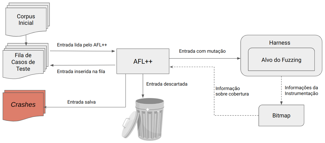 A imagem abaixo ilustra a visão geral e simplificada do funcionamento do AFL++.