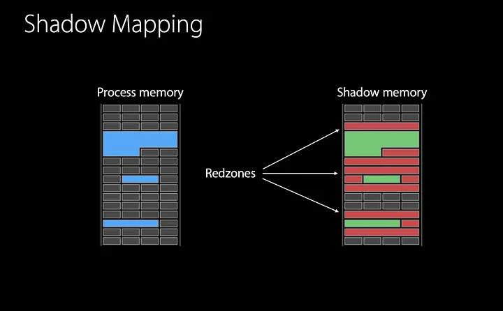 O controle das regiões alocadas e liberadas da memória se dá pela chamada “shadow memory”. Cada 8 bytes de memória são mapeados em 1 byte na shadow memory.