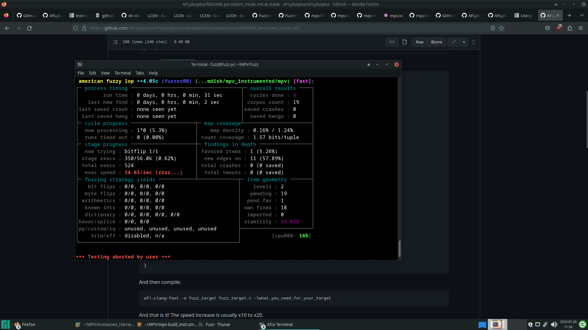Ao utilizar o persistent mode, a velocidade de fuzzing subiu consideravelmente.