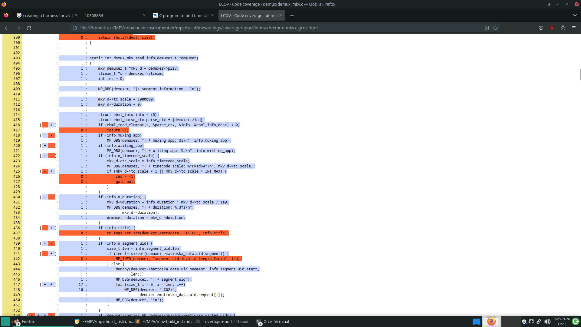 Como o foco inicial dessa campanha de fuzzing é no processamento de arquivos MKV, o trecho abaixo mostra parte da lista de arquivos e funções que foram monitoradas pelo AFL++ durante o processo de fuzzing.