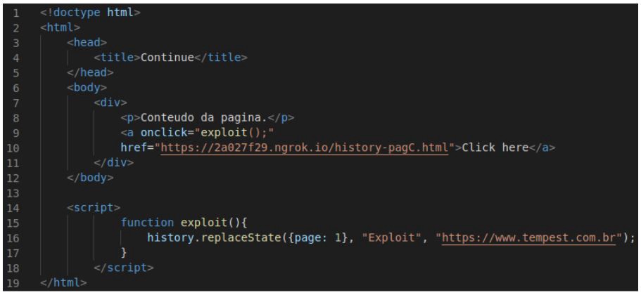Na página C, ao usarmos a setinha para voltar uma página, devemos ser direcionados para o site que foi posto pelo history.replaceState(), nesse caso https://www.tempest.com.br.