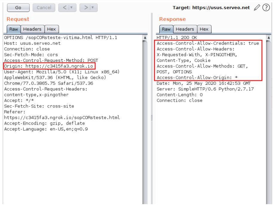 Consideremos agora o cenário em que o campo Access-Control-Allow-Origin reflete a mesma origem do requisitante. Vejamos o resultado na figura 2.6, a seguir: