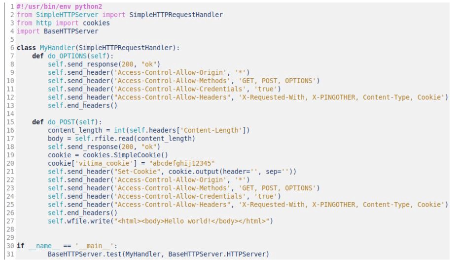 Como prova de conceito, caso seja permitido o acesso cross-origin, o alert(xhr.response) contido na figura 2.2 deve printar a linha 27 da figura 2.4 (contendo o texto Hello world!).