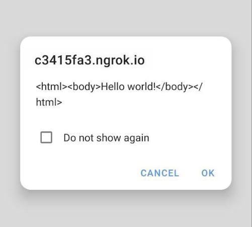 Em contrapartida, no navegador móvel Google Chrome, através de uma injeção de política, houve a sobrescrição da diretiva existente script-src. A partir da utilização da diretiva script-src-elem, foi possível sobrescrever diretivas script-src existentes. Através de uma prova de conceito criada por Gareth Heyes, pesquisador da PortSwigger, um XSS foi acionado sem qualquer dificuldade.