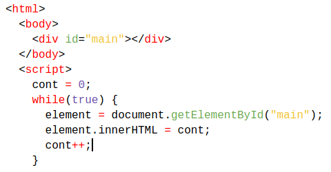 - O loop infinito funcionou em todas as bibliotecas que executam código Javascript.