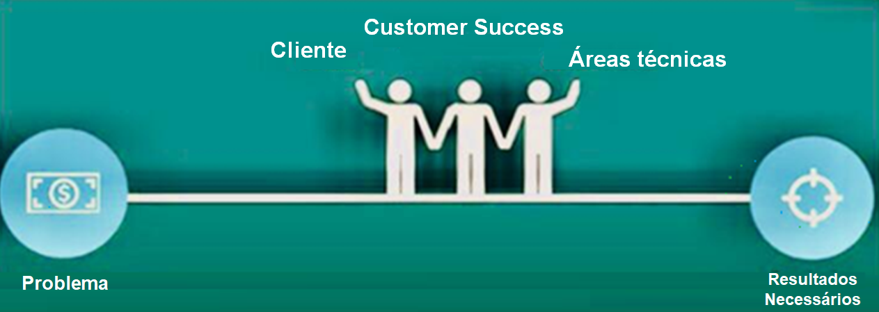 Vale sinalizar que o principal desafio é estabelecer uma boa e fluida comunicação entre as partes interessadas aqui (Cliente, Customer Success e a Área técnica), enquanto percorrem juntos a jornada a partir do investimento feito no ato do estabelecimento do contrato (que visa evitar ou resolver o problema) em busca do alcance dos resultados esperados, conforme ilustra a figura 1.