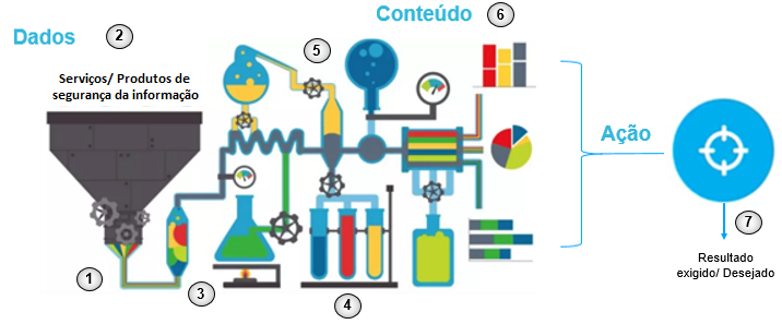 Vale lembrar que só conseguimos proteger aquilo que conhecemos. Por isso, é importante colocar-se no lugar do seu cliente e dar visibilidade do que foi contratado versus o valor agregado para o negócio dele. Pois o cliente espera receber dados estratégicos, que gerem o resultado exigido e desejado por ele, conforme comentamos anteriormente. Essas informações, quando são analisadas, podem extrair conteúdo para tomadas de decisão mais assertivas e consequentemente a geração do resultado, conforme a figura abaixo: