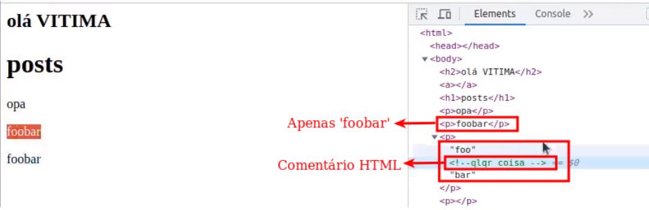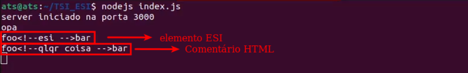 Como é possível observar, o comentário HTML ainda está presente no código-fonte HTML da página, enquanto o elemento ESI foi interpretado e, posteriormente, enviado ao usuário final. Em outras palavras, para o usuário final, não há qualquer indicação da presença desse elemento na página.