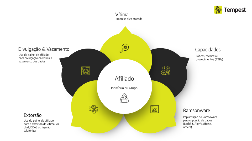 Este artigo tem o objetivo de apresentar informações relevantes sobre o funcionamento de grupos cibercriminosos, financeiramente motivados, operando no modelo Ransomware-as-a-Service, os quais coordenam ataques contra instituições públicas e privadas, com a cooperação de times parceiros denominados afiliados.