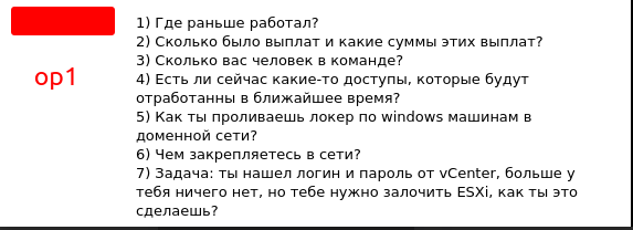 Apresentamos a seguir algumas perguntas feitas por operadores de dois grandes grupos de ransomware a um grupo de afiliados durante algumas dessas entrevistas. Chamaremos esses grupos de Operador 1 e Operador 2 ou, de forma abreviada, como Op1 e Op2.