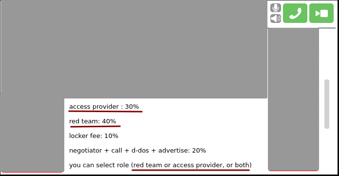 Uma vez aprovado, após essa e outras etapas, o time parceiro e seus membros passam, então, a ser considerados afiliados, também conhecidos como adverts. Em algumas operações de Ransomware-as-a-Service há dois tipos de afiliados: provedores de acessos (IAB) ou pentesters; e, portanto, obedecem a diferentes condições de pagamento.