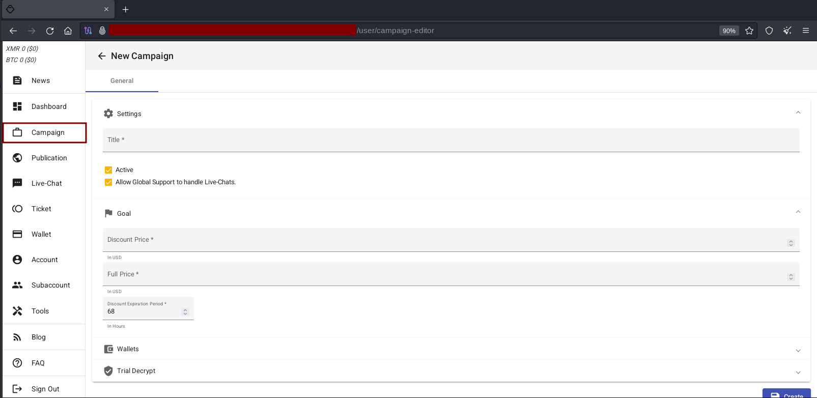 - Allow Global Support to handle Live-Chats: determina se a negociação via chat com a vítima será feita apenas pelo afiliado (não selecionado) ou qualquer membro da operação (selecionado);