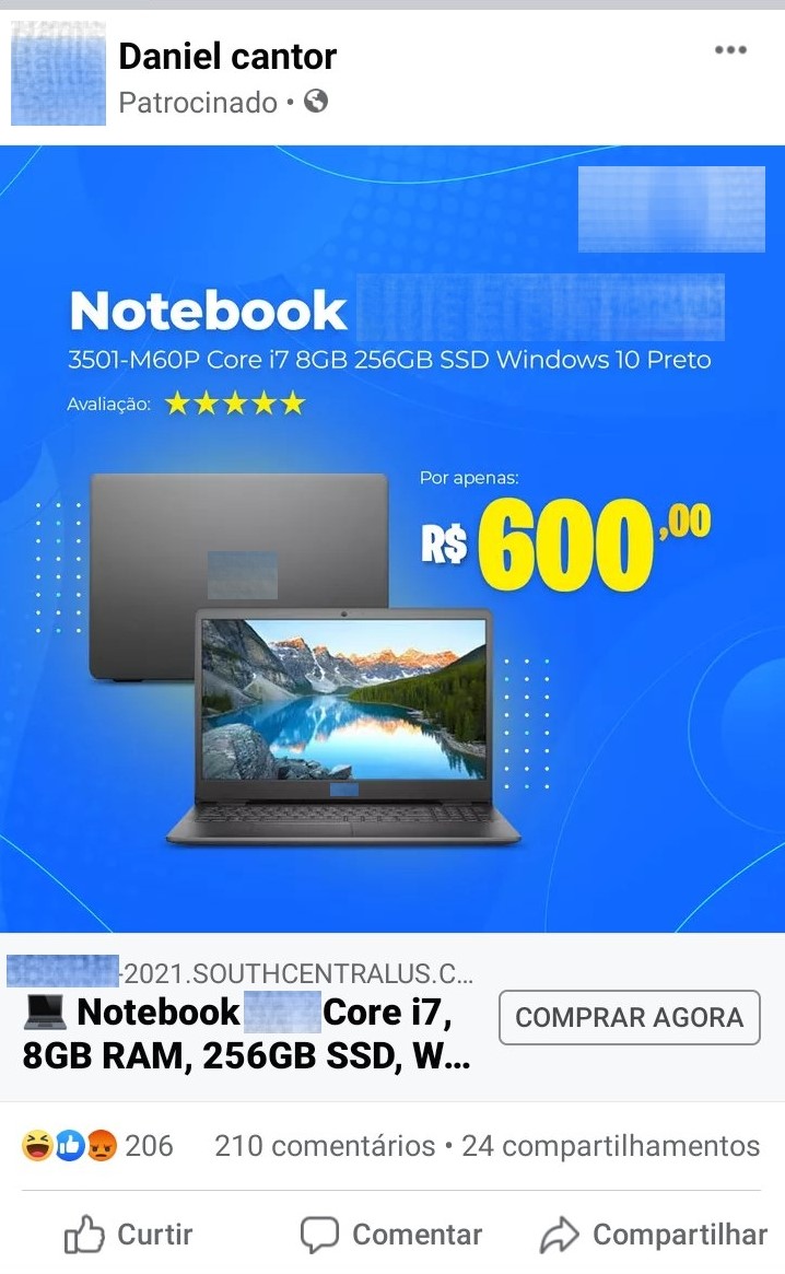 Esse uso indevido de links patrocinados tem sido acompanhado desde 2018. Os criminosos criam contas falsas no Facebook e no Instagram usando marcas de varejistas famosos e contratam o serviço de impulsionamento para divulgar produtos de lojas falsas. Outra abordagem conhecida consiste em comprometer contas de terceiros que já possuam o serviço de anúncios contratado.