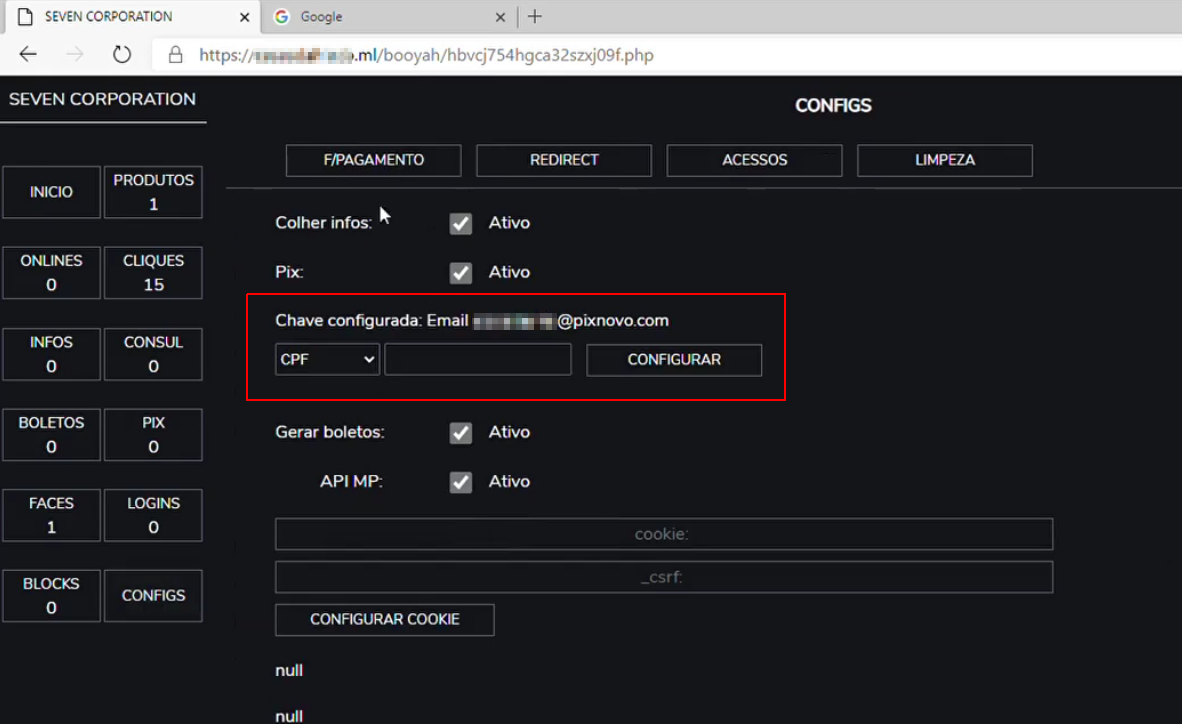 Em 2018, em nossa primeira pesquisa sobre plataformas que comercializam lojas online falsas, desmistificamos o funcionamento de toda uma operação de Phishing-as-a-Service. Algumas das principais mudanças identificadas entre o cenário antigo e o atual das fake stores estão relacionadas às técnicas antianálise que os criminosos têm empregado nessas infraestruturas, como a cifragem de funções importantes no código-fonte, o envio das informações coletadas direto para o banco de dados e a ofuscação de diretório e links com base em strings aleatórias. Outra mudança notável é a adequação ao Pix, o novo meio de pagamento instantâneo. Agora há campos para o cadastramento de chaves Pix no painel de controle para receber o pagamento pelos produtos falsos.