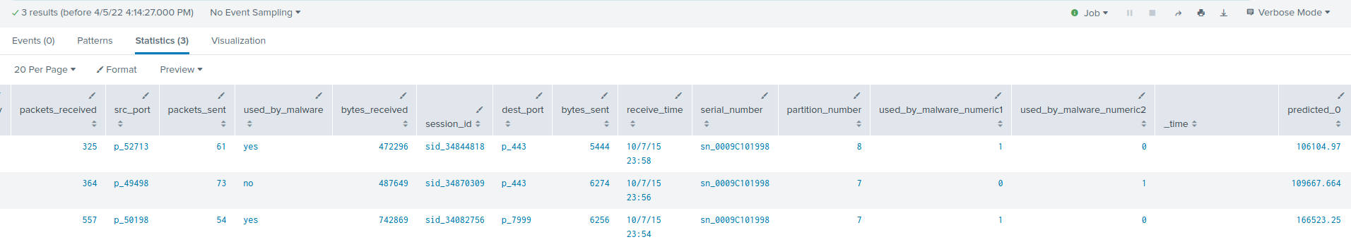 A Figura 7 mostra três dados de logs de firewall que são detectados como suspeitos por um autoencoder devido aos seus altos erros de reconstrução, que são retratados na última coluna da Figura 7 como “predicted_0”.