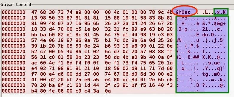Uma das principais características do Gh0st RAT está presente em sua comunicação entre o host comprometido e o servidor de comando e controle, considerando que o cabeçalho do pacote trocado entre eles começa sempre com uma “palavra mágica” de 5 bytes que, em sua configuração padrão é “Gh0st”. Além disso, também é um padrão do malware compactar o payload do pacote por meio da biblioteca zlib.
