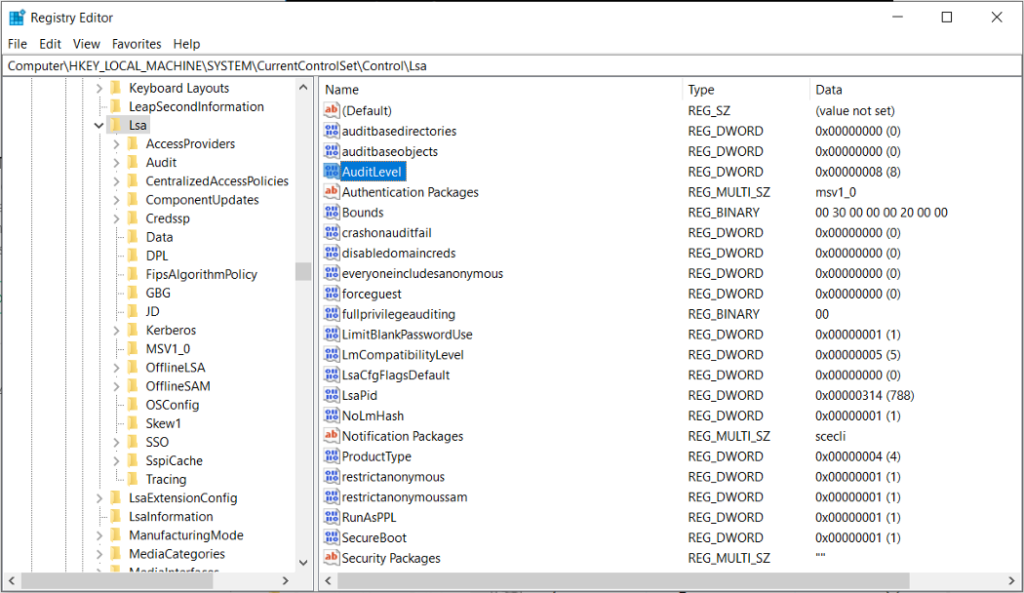 Chave de registro: [HKEY_LOCAL_MACHINE\SYSTEM\CurrentControlSet\Control\LSA]