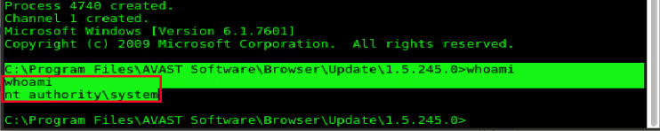 Por fim, para concluir o processo de exploração de escalação de privilégios, foi substituído o conteúdo da DLL por um que retornasse uma shell personificada com o usuário NT AUTHORITY\SYSTEM.